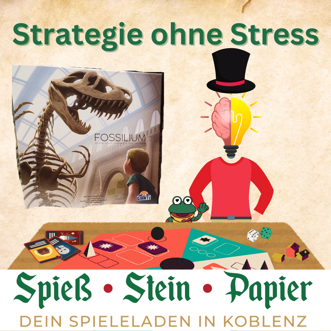 Bei Strategie ohne Stress spielen wir Fossilium, ein anspruchsvolles Kennerspiel rund um Fossilien, Forschung und clevere Planung.