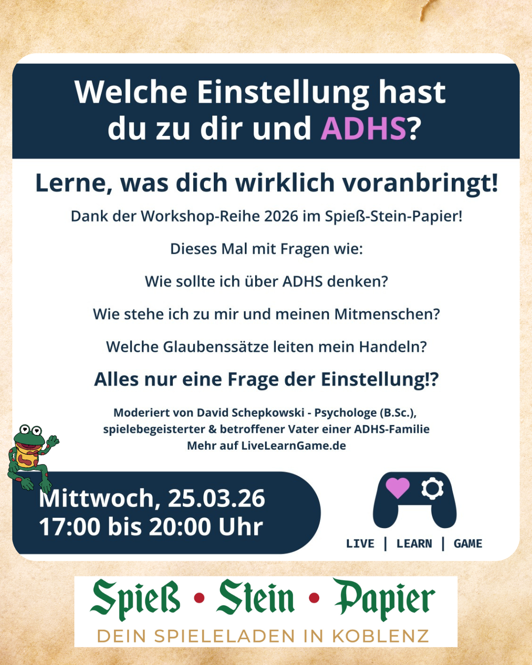 Das Leben ist kein Spiel – und mit ADHS oft noch eine Extra-Herausforderung. Doch genau hier setzt dieser besondere Abend an: